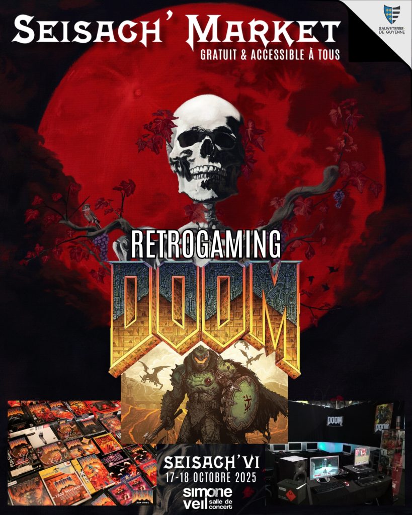 On n’oublie pas les à-côtés : le Seisach’ Market avec ses artisans, mais pour la première fois, un stand de Retrograming gratuit autour du jeu DOOM.