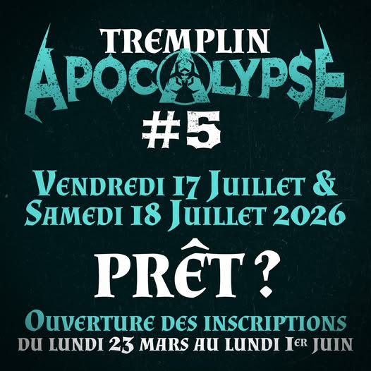 ⚡ Les inscriptions au tremplin de l’Apocalypse Metal Fest arrivent le lundi 23 mars!