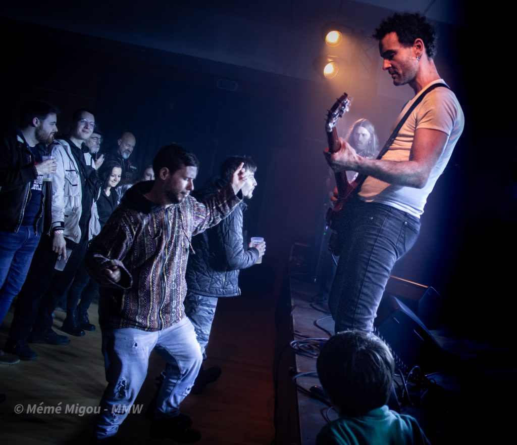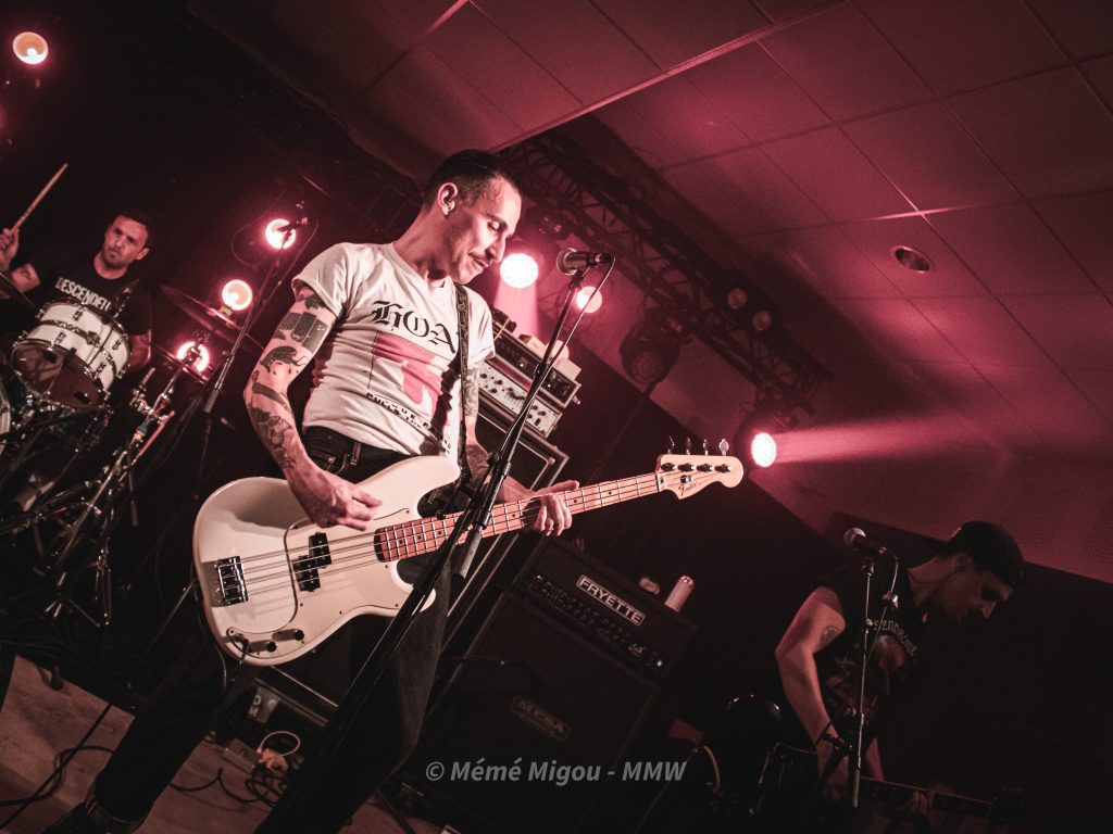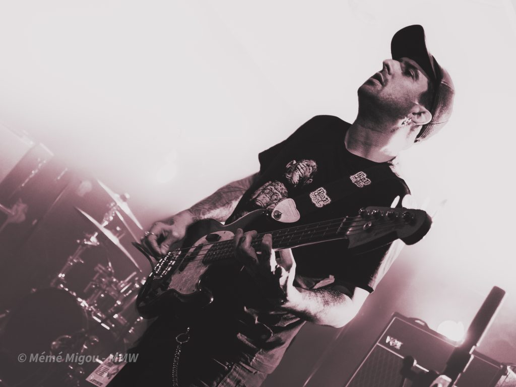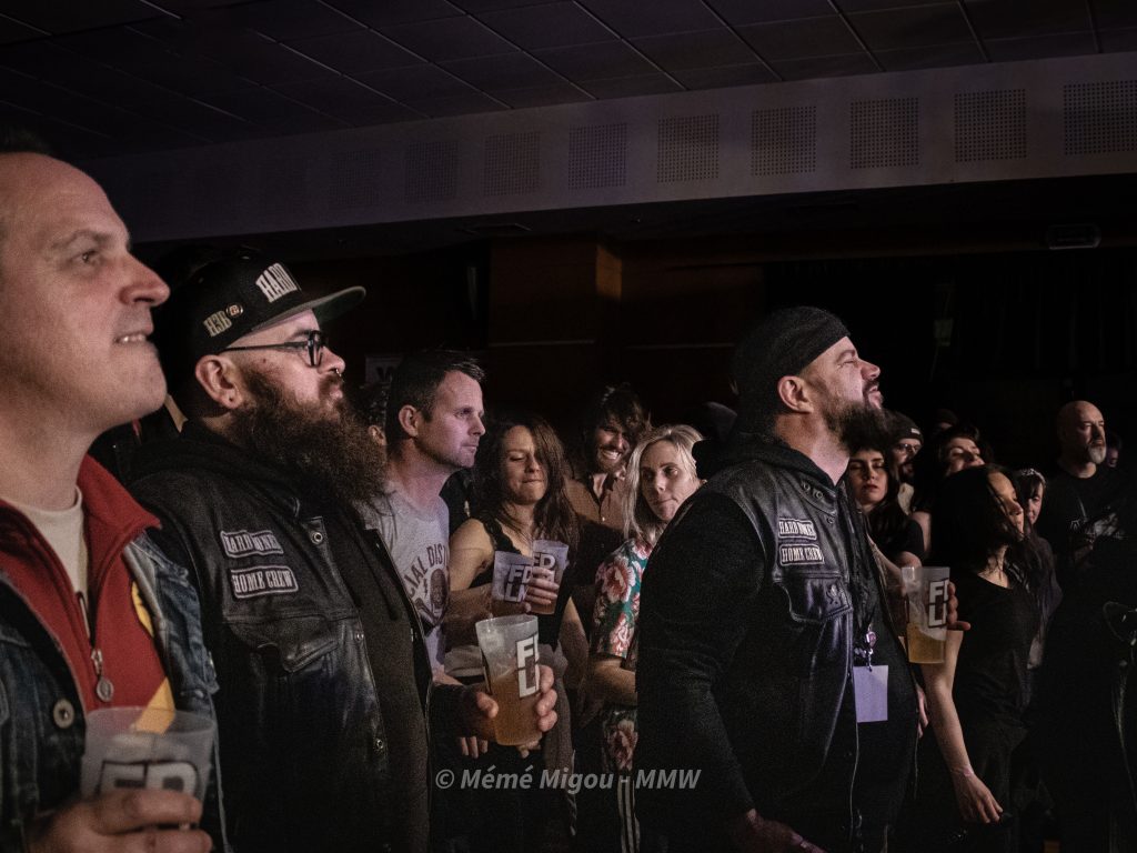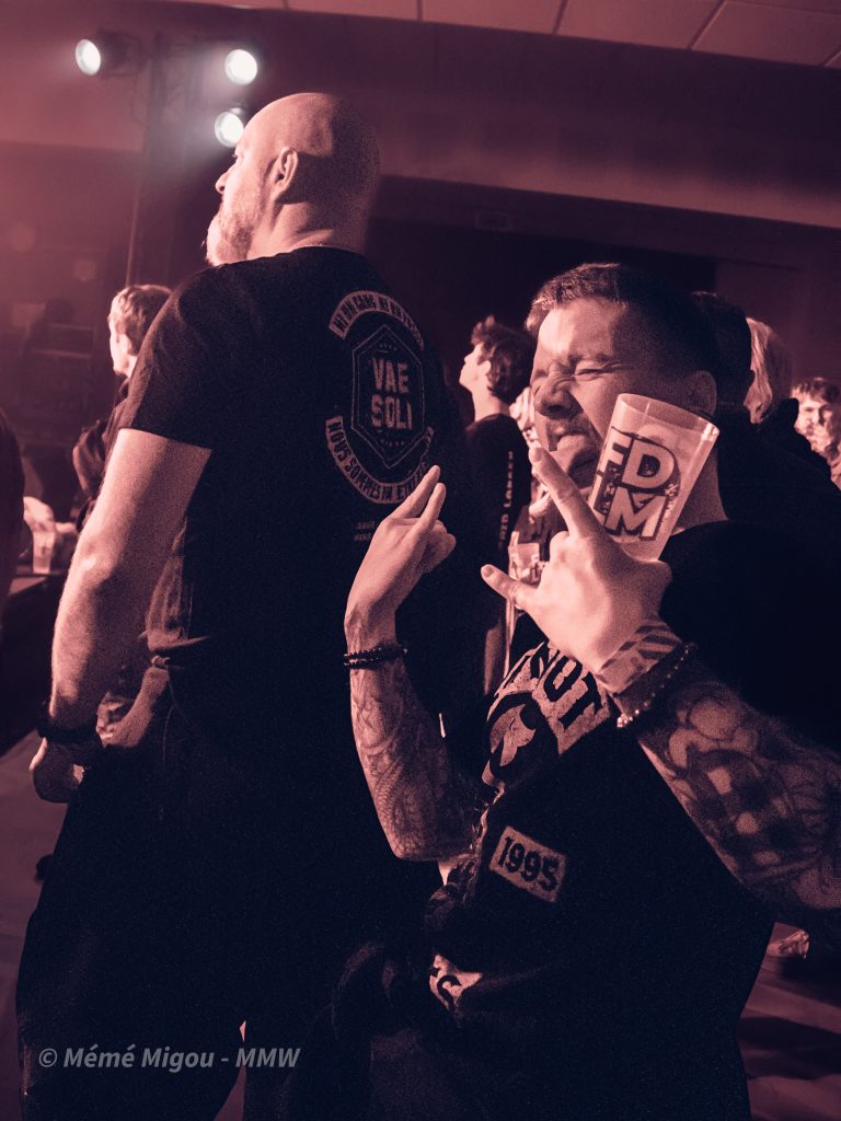 C’est un festival à taille humaine, proposé par des passionnés. Nous ne sommes pas, stricto sensu, sur du metal. Mais fuck ! On peut s’ouvrir un tantinet, non ?! Nous dirons qu’on navigue globalement dans une forme de punk-rock festif qui cause à tout le monde, toutes générations confondues. Parce que dès l’entrée, on est accueilli par une armée de jeunes pour vérifier la validité des billets. On les retrouvera aussi au merch où Ils feront fait un super taf ! Dans la salle, il y avait du biker barbu (coucou T.Oria et Fab du Hard Bones MC), il y avait des fans de metal, de punk, mais aussi des personnes pas du tout de l’univers venues pour découvrir et surtout passer un bon moment. Et, bien que fans de reggae et autres, je les ai vus sauter, crier, chanter, danser.