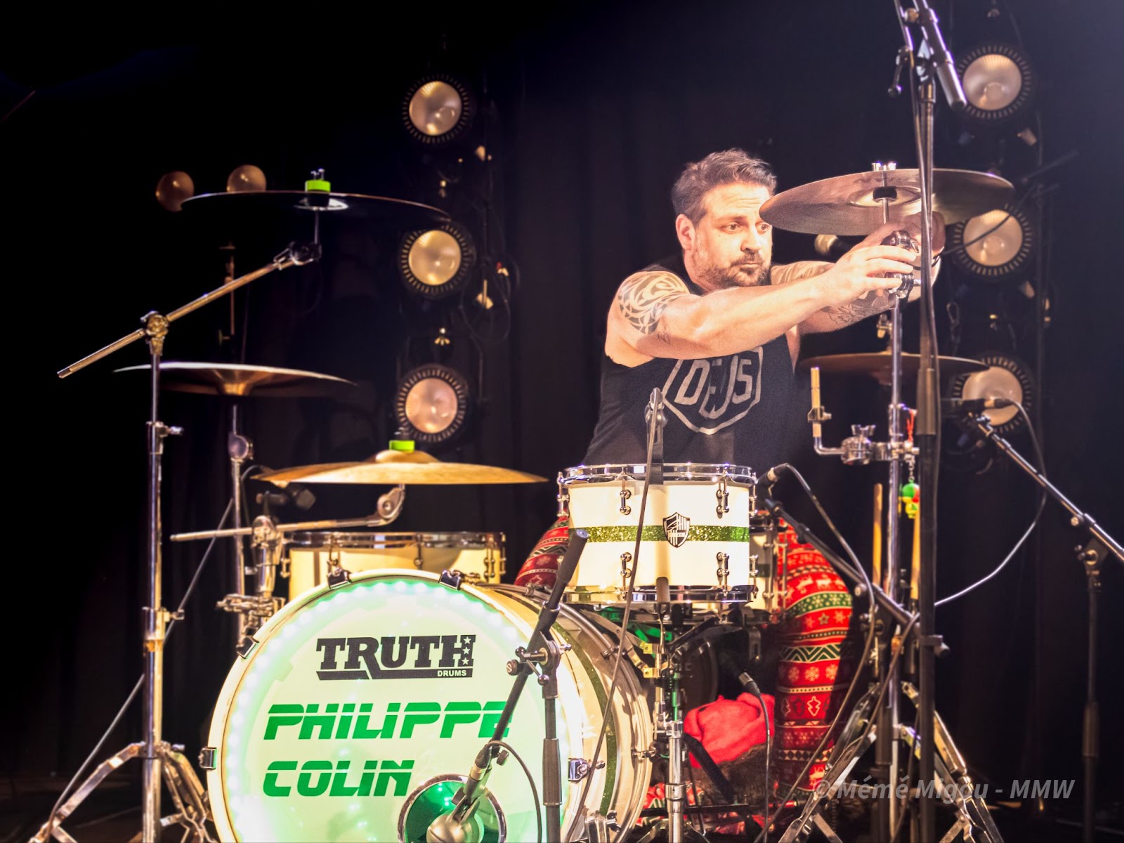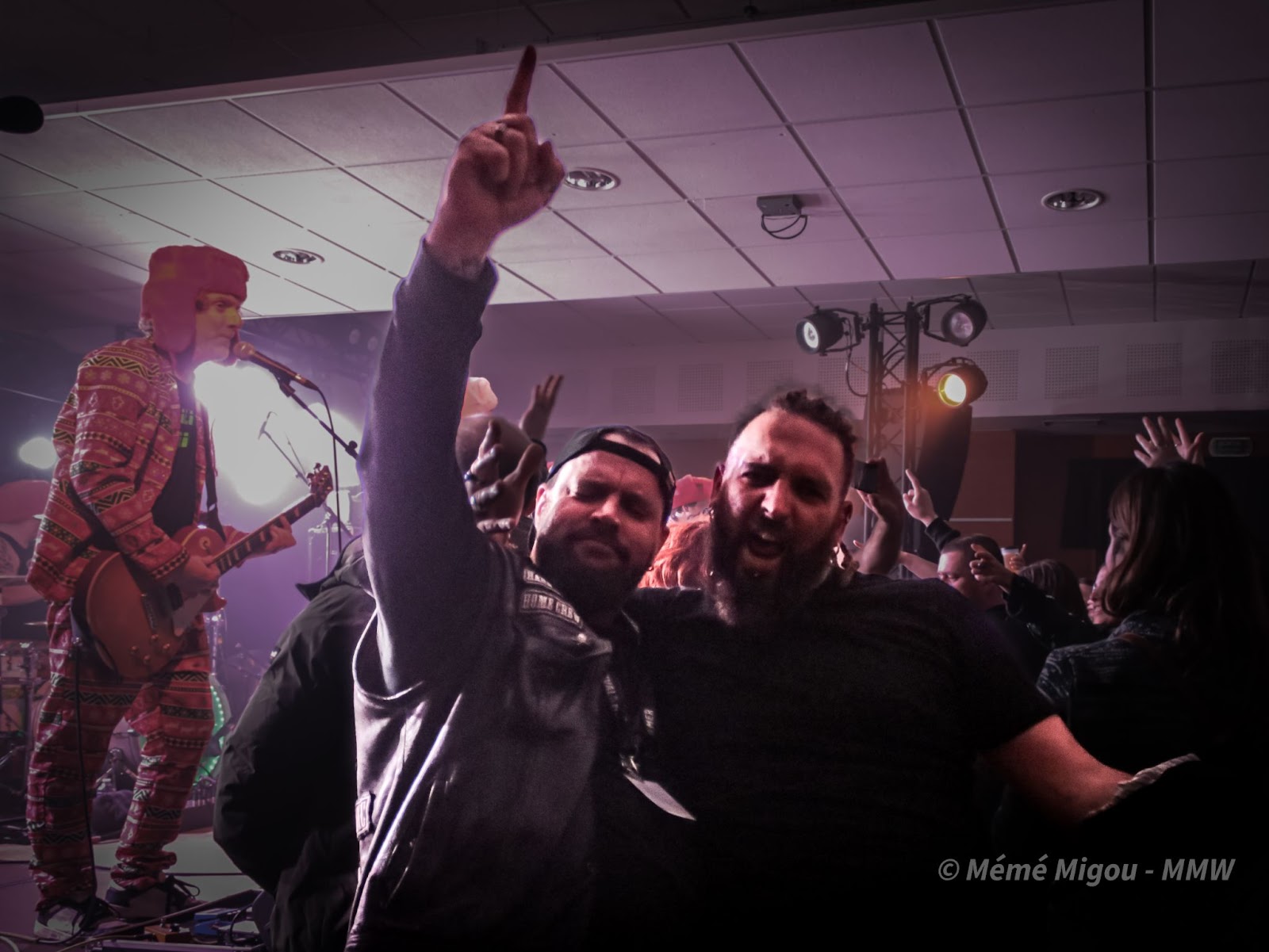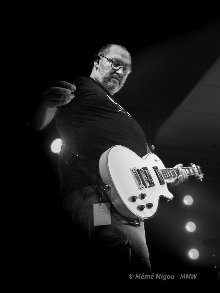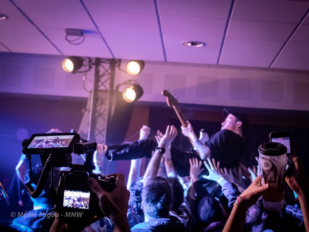 C’est un festival à taille humaine, proposé par des passionnés. Nous ne sommes pas, stricto sensu, sur du metal. Mais fuck ! On peut s’ouvrir un tantinet, non ?! Nous dirons qu’on navigue globalement dans une forme de punk-rock festif qui cause à tout le monde, toutes générations confondues. Parce que dès l’entrée, on est accueilli par une armée de jeunes pour vérifier la validité des billets. On les retrouvera aussi au merch où Ils feront fait un super taf ! Dans la salle, il y avait du biker barbu (coucou T.Oria et Fab du Hard Bones MC), il y avait des fans de metal, de punk, mais aussi des personnes pas du tout de l’univers venues pour découvrir et surtout passer un bon moment. Et, bien que fans de reggae et autres, je les ai vus sauter, crier, chanter, danser.