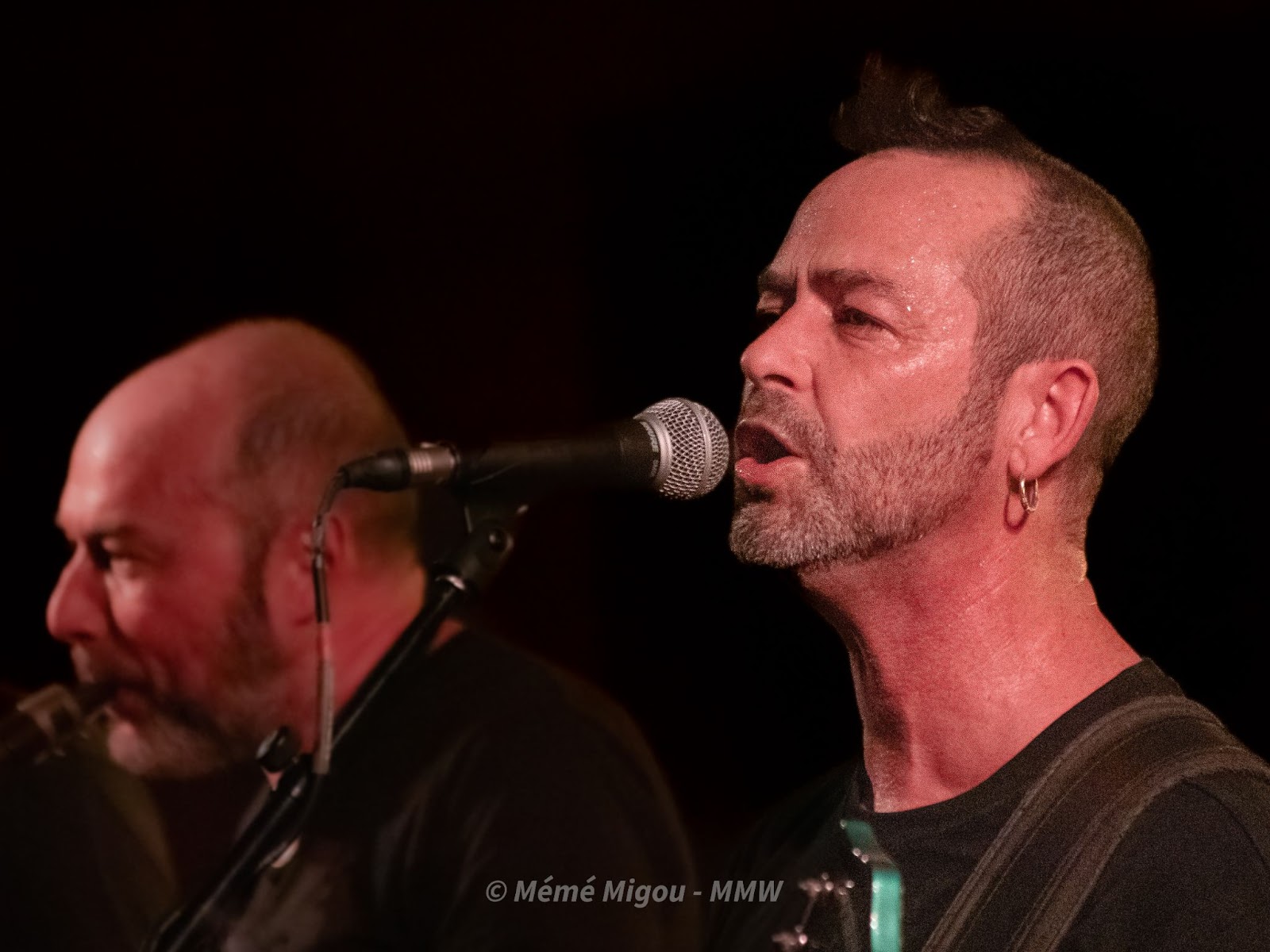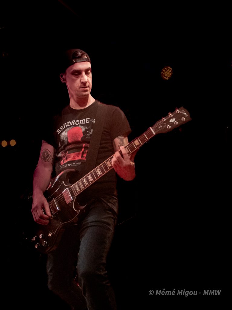 Ce sont deux chanteurs qui vont se relayer pour du punk rock plutôt bien foutu, assez travaillé avec des incrustations de ska. Le jeu du batteur est à souligner. Quelle énergie ! Dans la salle, ça danse, ça pogote, on a même un début de circle pit à l’initiative du groupe… mais qui ne perdurera pas. On voit les sourires sur les visages. Mais qu’est-ce qu’il fait chaud !