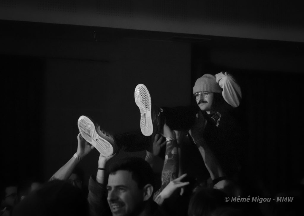 Coupe Gorge laissera pas mal de personnes sans voix. Non pas que le public se demande ce qu’il se passe sur scène, mais surtout parce que ça chante et ça danse dans la salle. Les premiers slams arrivent. Et pas que les hommes !