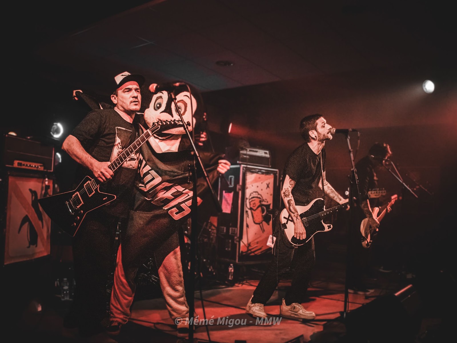 Seconde surprise de la soirée, c’est un… punaise, je n’arrive pas à définir le truc… un pingouin géant, dirons-nous, qui vient lancer le set. On le retrouvera plus tard sur un autre titre, le drapeau à la main. C’est foutraque, mais c’est fun. Non… je reprends : c’est foutraque ET c’est fun !