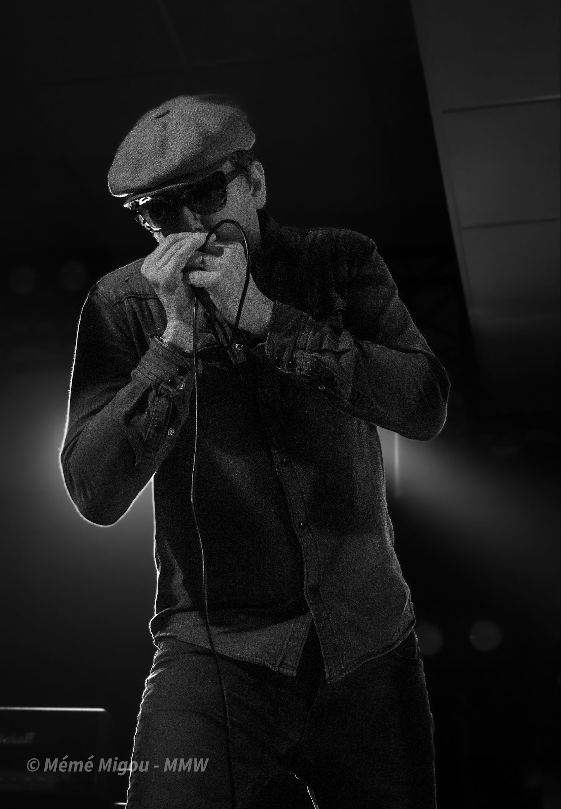 Une palanquée d’harmonicas, tous réglés sur une gamme précise, rangés minutieusement. C’est assez épatant à voir. Ce ne sera pas la seule surprise de la soirée ! Également une profusion de pieds de micros. Ils seront 4 sur 5 à pousser de la voix.