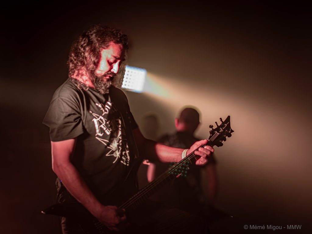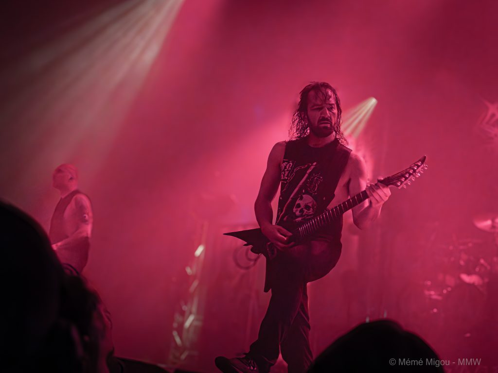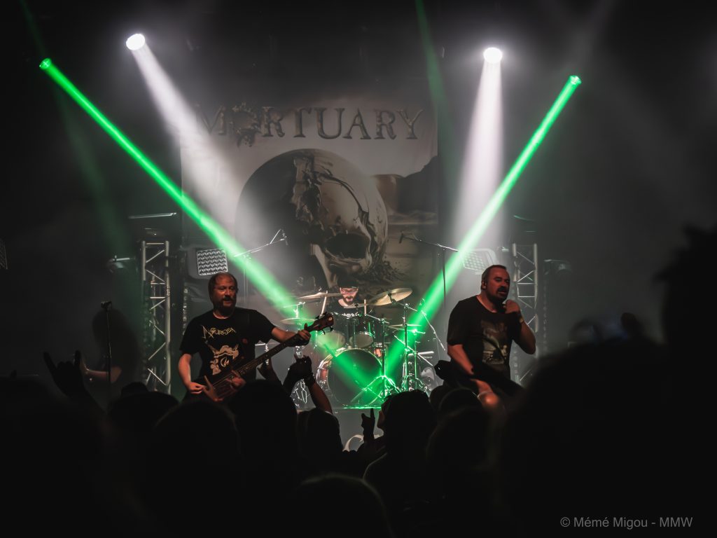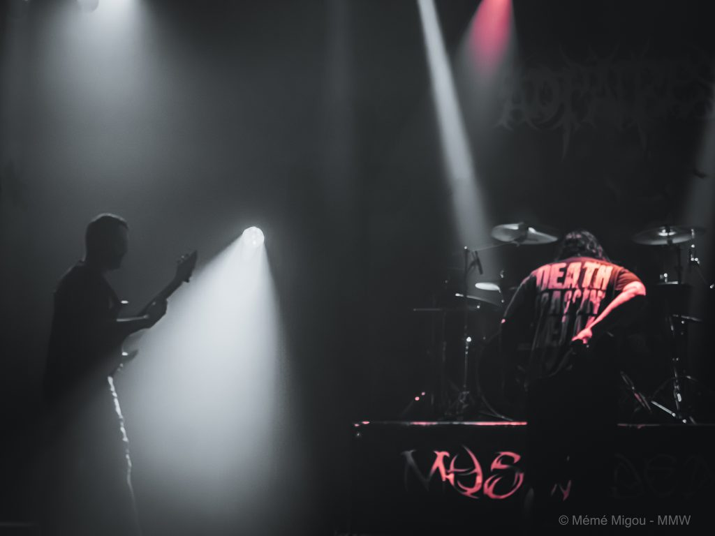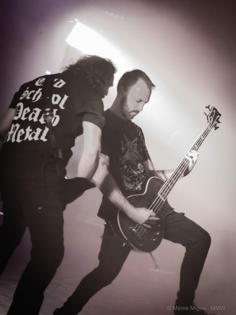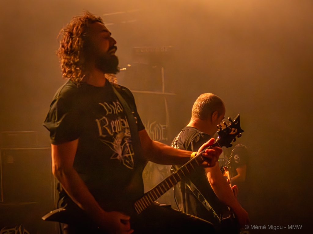Bon… Bon… Bon… Je dois dire que c’est Mortuary qui en a fait les frais. Je suis restée suffisamment pour m’auto-agacer de quitter la salle, tant l’ambiance était bouillonnante. Mortuary sont des légendes dans la scène française. Mais j’attendais avec une impatience non feinte l’arrivée de Memoriam. Ce qui est certain, c’est que la salle en demandait, re demandait, encore et encore. Le lightshow était aux petits oignons pour souligner la violence du Death de Mortuary, qui nous gratifie d’accélérations bien senties. Accélérations, rythmiques groovies, chant pas forcément growlé, mais bien énervé… Il me faudra les revoir, c’est indéniable !