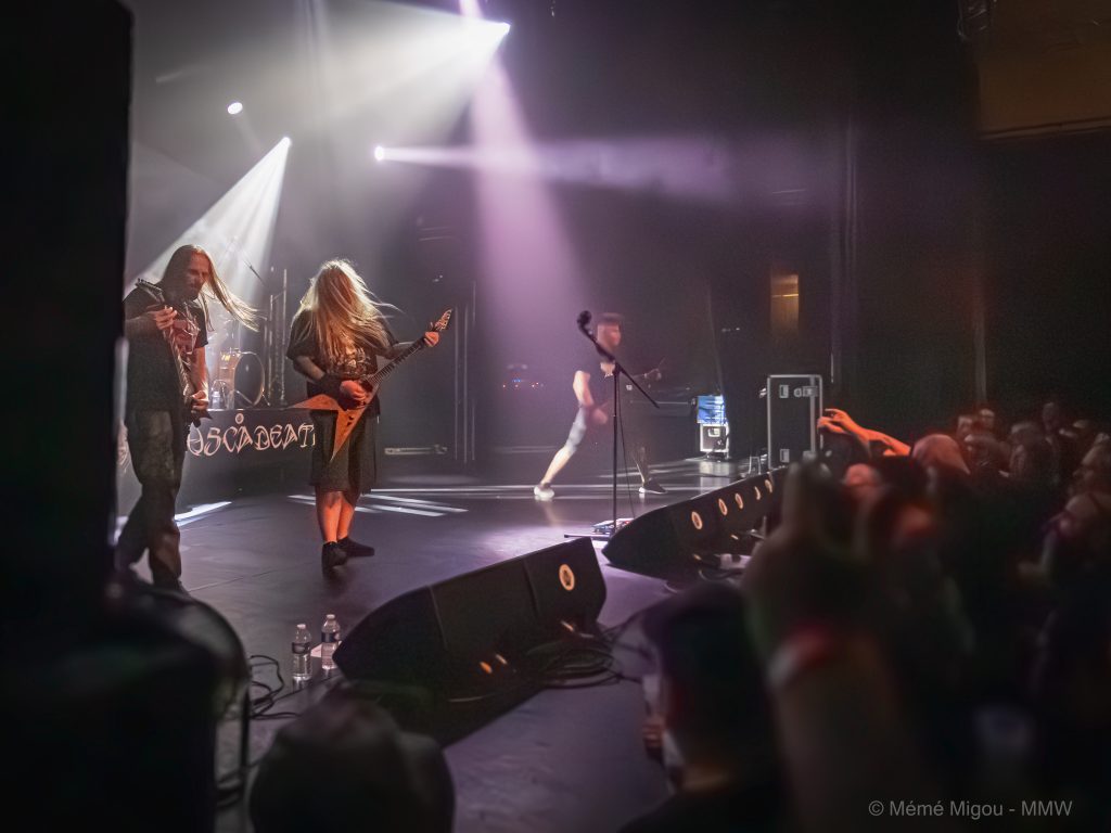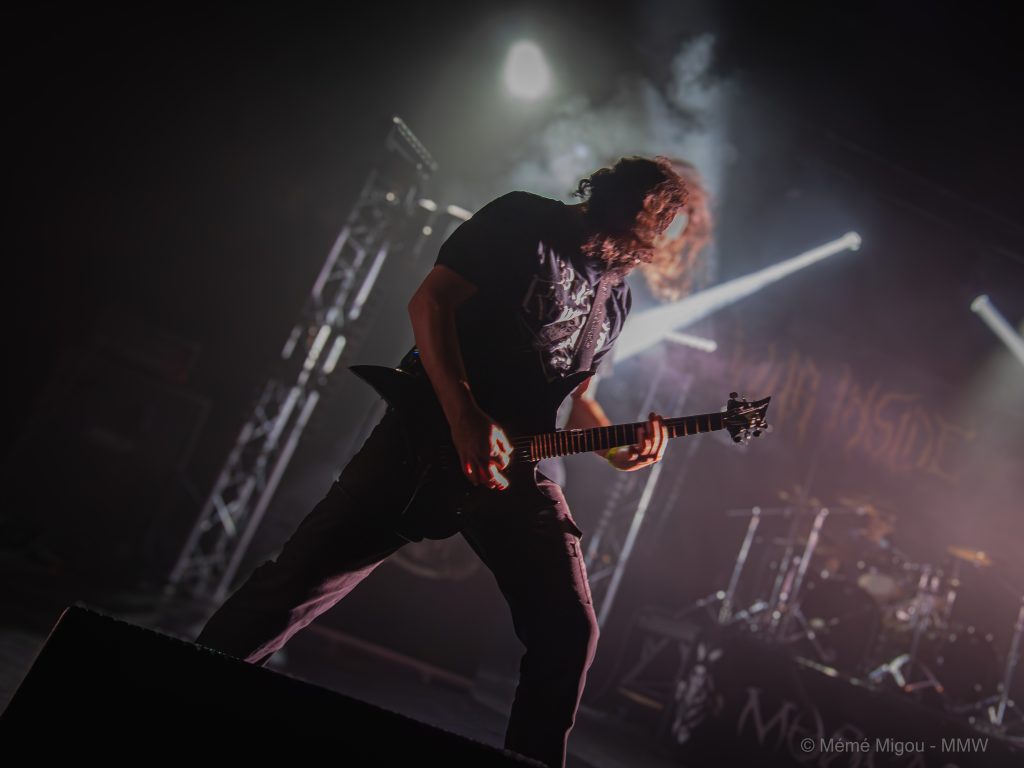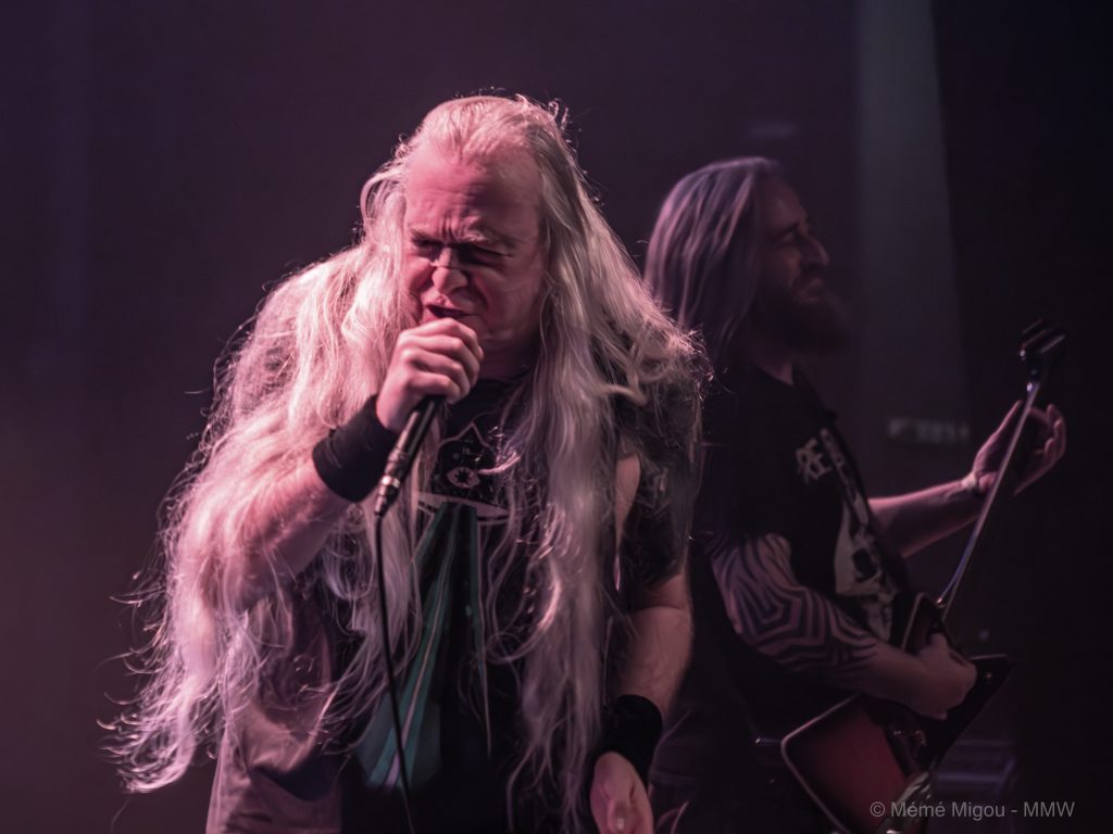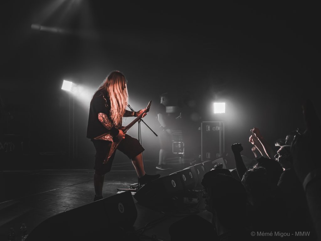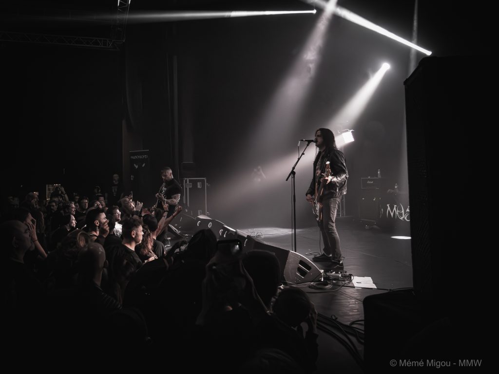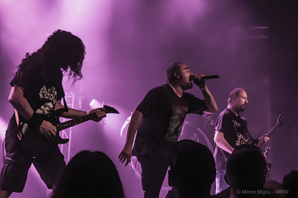 Bon… Bon… Bon… Je dois dire que c’est Mortuary qui en a fait les frais. Je suis restée suffisamment pour m’auto-agacer de quitter la salle, tant l’ambiance était bouillonnante. Mortuary sont des légendes dans la scène française. Mais j’attendais avec une impatience non feinte l’arrivée de Memoriam. Ce qui est certain, c’est que la salle en demandait, re demandait, encore et encore. Le lightshow était aux petits oignons pour souligner la violence du Death de Mortuary, qui nous gratifie d’accélérations bien senties. Accélérations, rythmiques groovies, chant pas forcément growlé, mais bien énervé… Il me faudra les revoir, c’est indéniable !