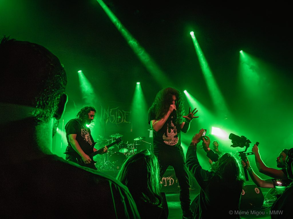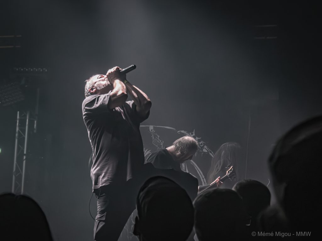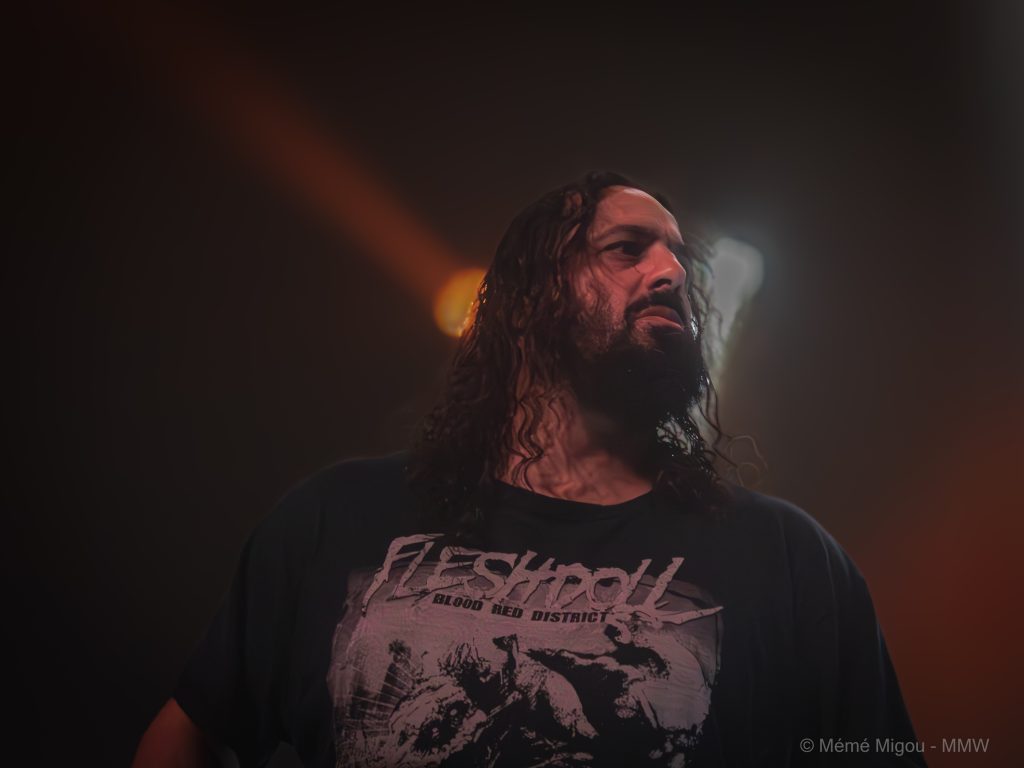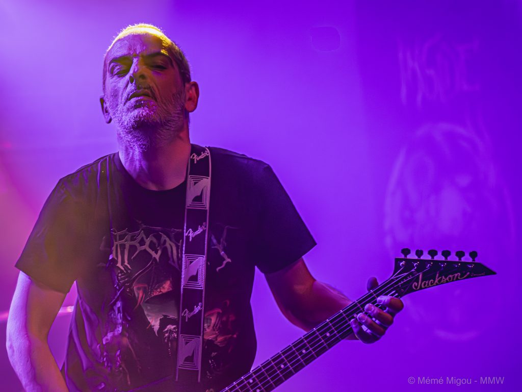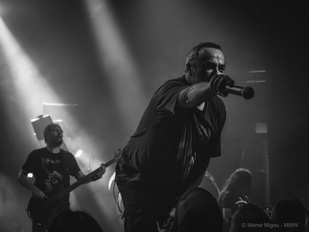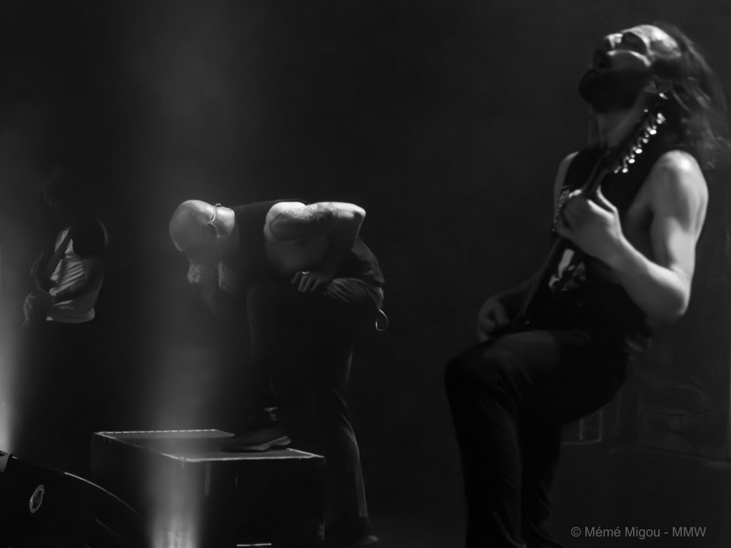 Bon… Bon… Bon… Je dois dire que c’est Mortuary qui en a fait les frais. Je suis restée suffisamment pour m’auto-agacer de quitter la salle, tant l’ambiance était bouillonnante. Mortuary sont des légendes dans la scène française. Mais j’attendais avec une impatience non feinte l’arrivée de Memoriam. Ce qui est certain, c’est que la salle en demandait, re demandait, encore et encore. Le lightshow était aux petits oignons pour souligner la violence du Death de Mortuary, qui nous gratifie d’accélérations bien senties. Accélérations, rythmiques groovies, chant pas forcément growlé, mais bien énervé… Il me faudra les revoir, c’est indéniable !