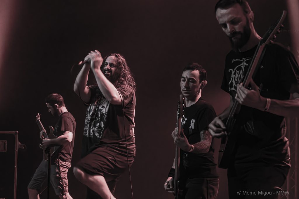 Hop… Encore une fois, on loupera la quasi-totalité du set de Voorhees car nous étions dans la partie presse du Muscadeath. On aura, Manu et moi, à peine le temps de voir 1 titres et quelques bribes d’un second. Pour le coup, on est un chouïa déçus puisque nous avions fait la connaissance de Chris, le chanteur, pour notre toute première interview de la journée. Et nous avions littéralement craqué sur sa gentillesse, son à propos et ses propos. (Attention, on ne dit pas que les autres interviews nous ont laissés de marbre… mais c’était le seul de la journée que nous interviewions – ouhhhh que c’est difficile à dire ça – avant le show).
