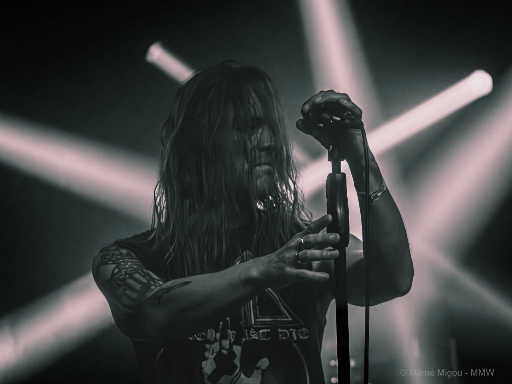 Le Death Metal pratiqué par Memoriam est bien entendu dans la lignée de Bolt Thrower, il est mélodique, il rentre dans la tête, il ne souffre pas les ronchonneries mais les écrase. Autrement dit, Memoriam est là, point barre. Et ceux qui étaient dans la salle étaient à surkiffer, comme Mémé. Là, je fais un clin d’œil appuyé au copain Looping von Looping Wild Show. Quant aux autres, ceux qui n’ont pas aimé, ils étaient dehors… J’ai malheureusement entendu pas mal de personnes n’avoir pas été séduites . M’en fous, moi, j’ai vu Memoriam (oserais-je dire Méméoriam ?), je suis aux démons !